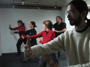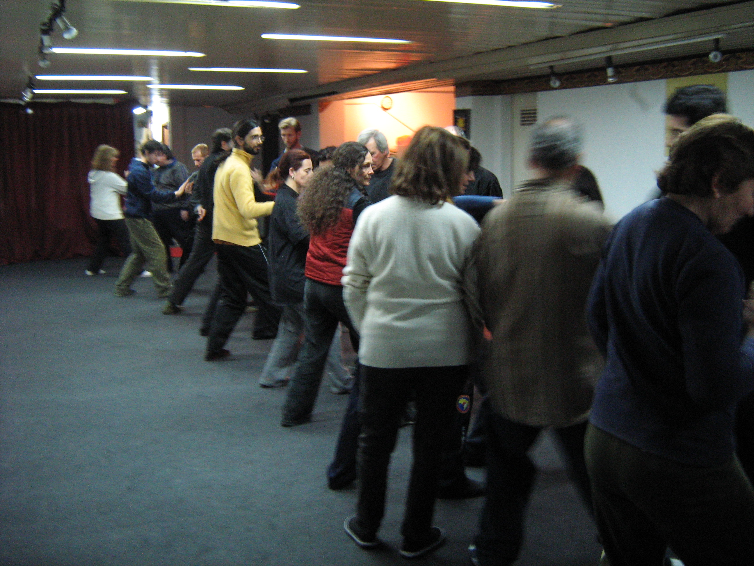 El tercer día, el último dedicado a la forma, hizo una especie de resumen de todo lo trabajado en los días anteriores, recordando lo principal a tener en cuenta en los ejercicios de calentamiento y de Qigong, y por supuesto en todo lo relativo a la forma. Quiero agregar que en mi caso sus indicaciones referidas a las sensaciones internas de los principios del Taijiquan fueron sumamente esclarecedoras, y el hecho de que las fuera puntualizando todo a lo largo del seminario me ayuda a integrarlas en la práctica de este estilo en particular. Me queda la sensación de permitirme espacios internos nuevos, de evitar apretarme y de airear todo mi cuerpo, en especial las articulaciones. De crecer en mi espacio y así ocupar de una manera distinta el espacio circundante.